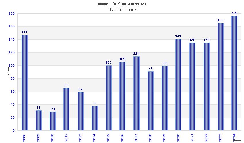 | Anno | Firme | Importi | Media | Naz. | Reg. | Prov. | Comu. |