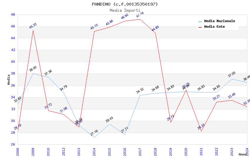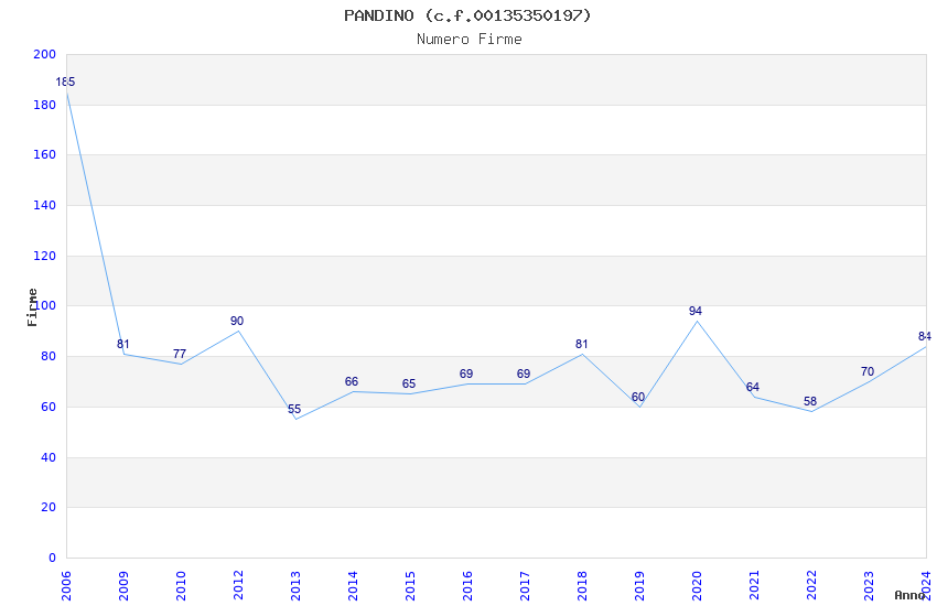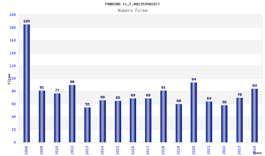 | Anno | Firme | Importi | Media | Naz. | Reg. | Prov. | Comu. |