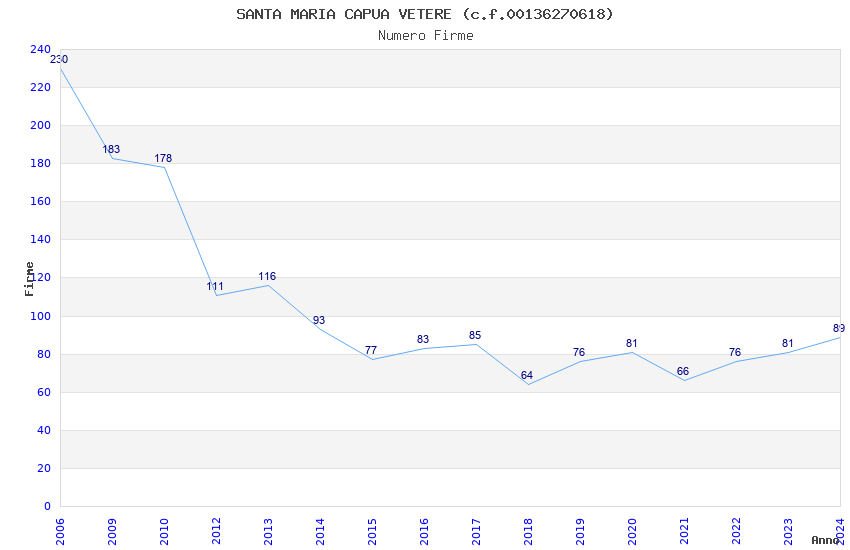 | 2016 | 83 | 3.671,73 | 44,24 | 14.566 | 824 | 110 | 8 |