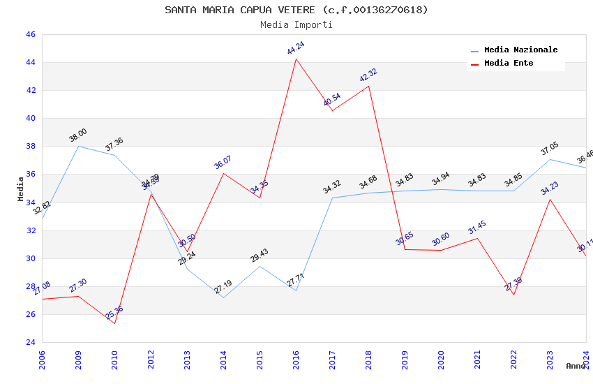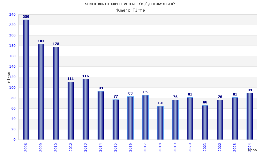 | Anno | Firme | Importi | Media | Naz. | Reg. | Prov. | Comu. |