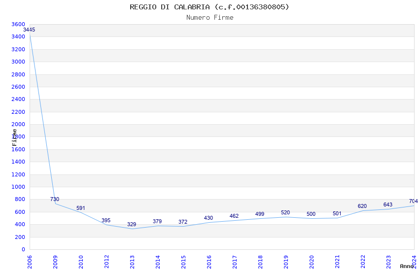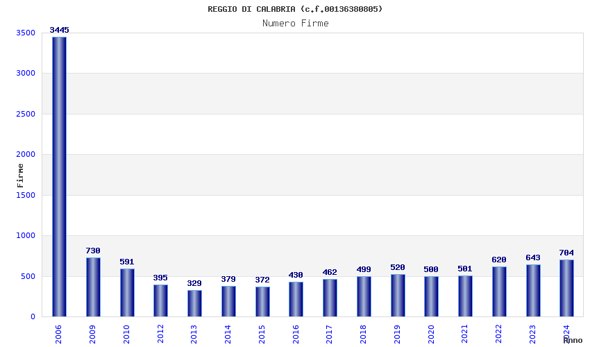 | Anno | Firme | Importi | Media | Naz. | Reg. | Prov. | Comu. |