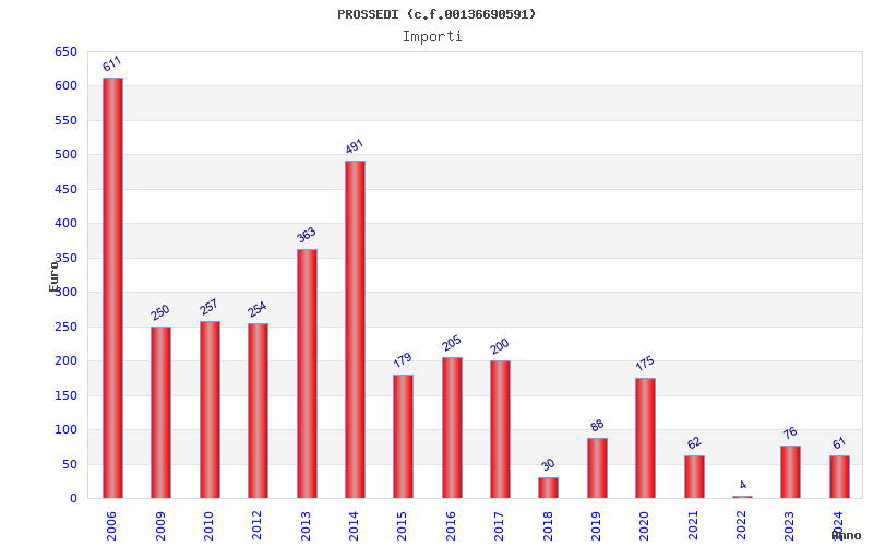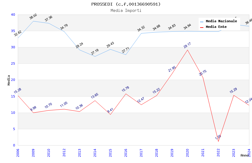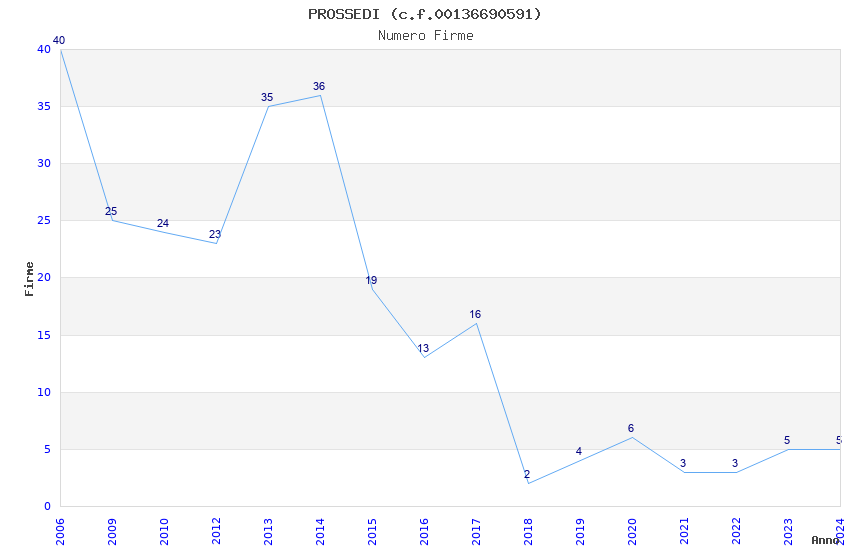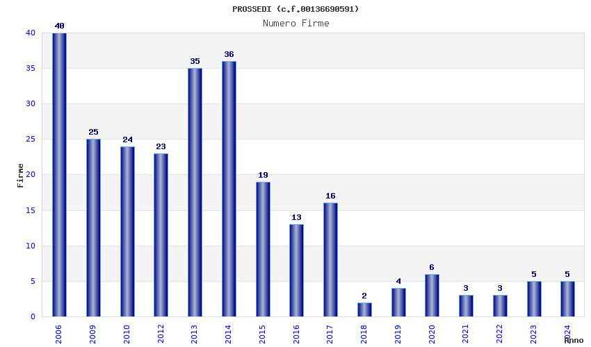 | Anno | Firme | Importi | Media | Naz. | Reg. | Prov. | Comu. |