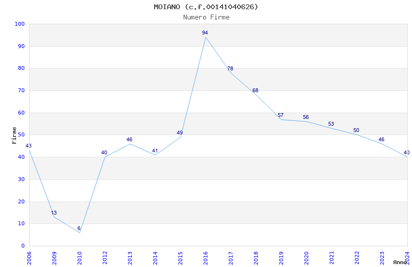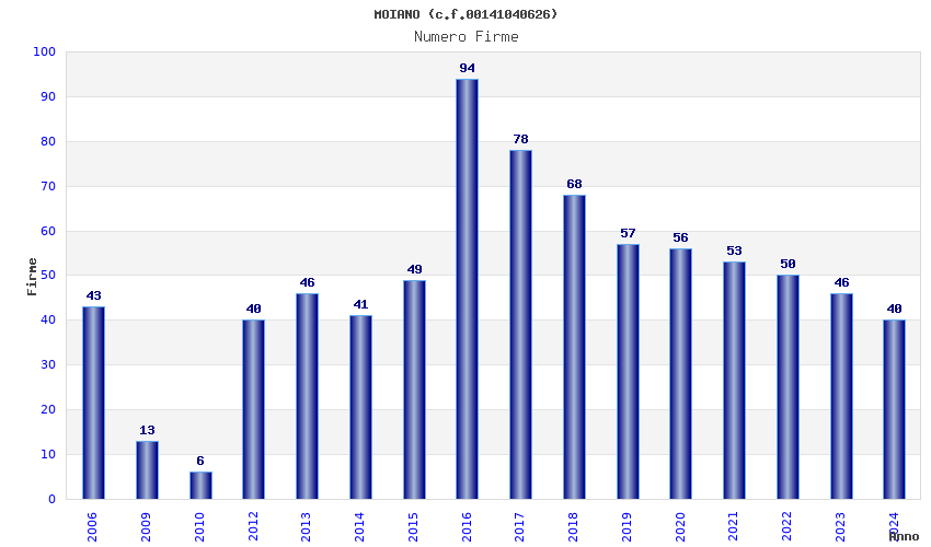 Anno Firme Importi Media Naz. Reg. Prov. Comu.