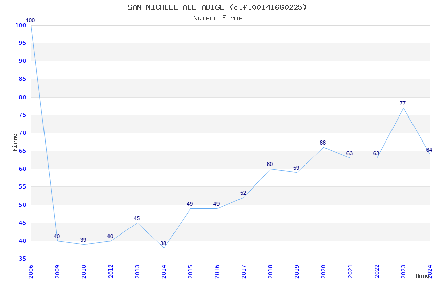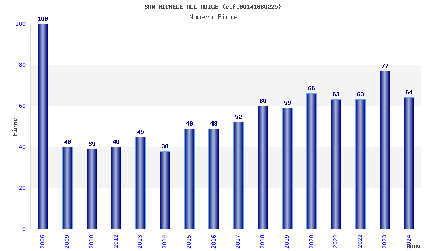 | 2023 | 77 | 1.720,67 | 22,35 | 26.285 | 862 | 384 | 2 |