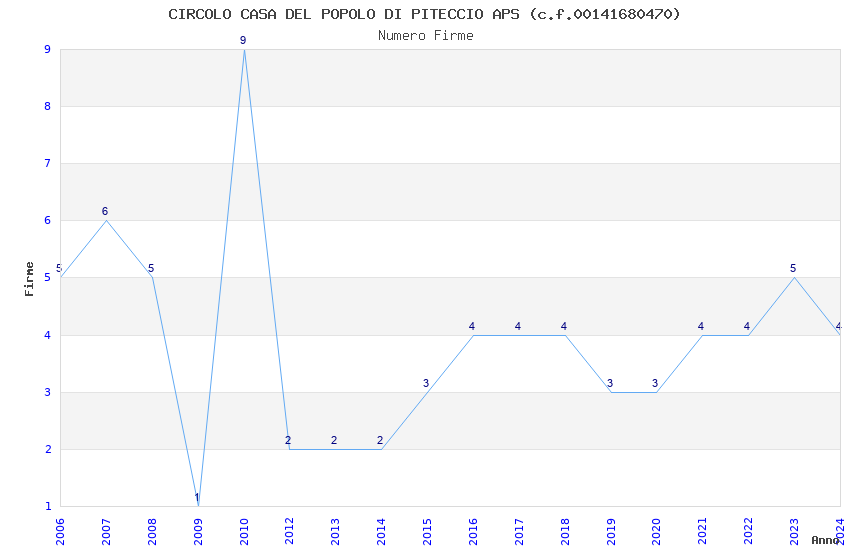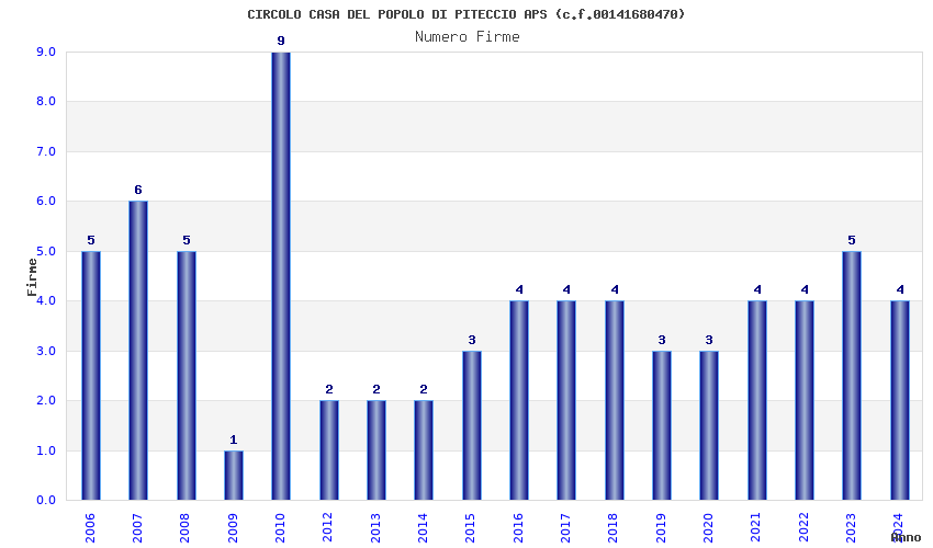| Anno | Firme | Importi | Media | Naz. | Reg. | Prov. | Comu. |