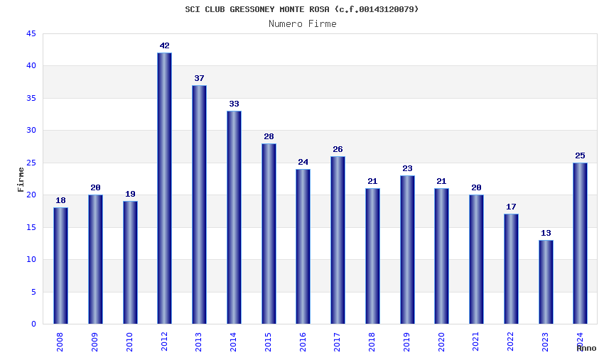 | 2012 | 42 | 5.719,31 | 136,17 | 7.656 | 21 | 21 | 1 |