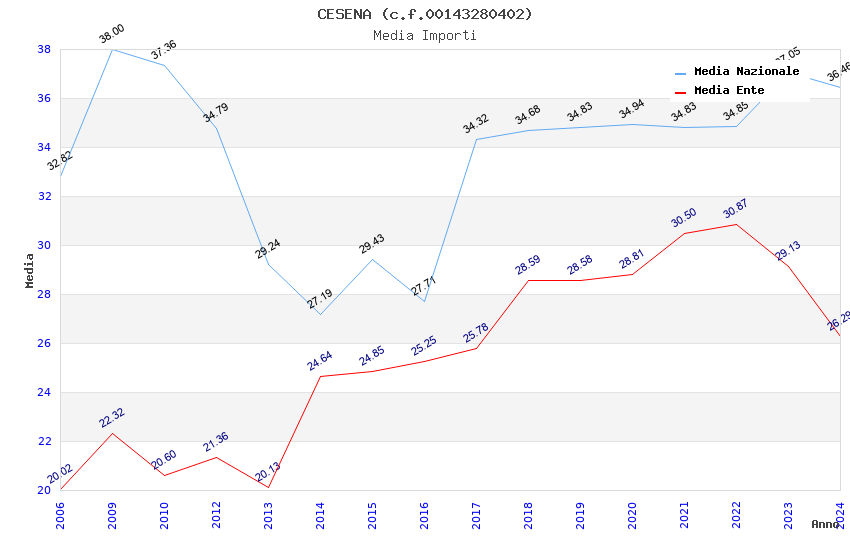 | Anno | Firme | Importi | Media | Naz. | Reg. | Prov. | Comu. |