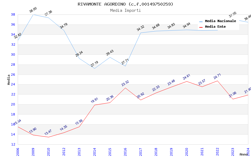 | Anno | Firme | Importi | Media | Naz. | Reg. | Prov. | Comu. |