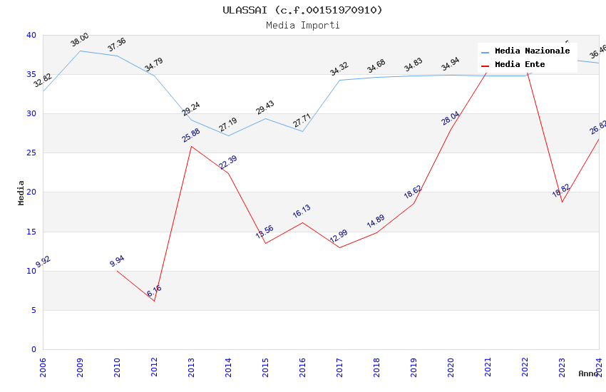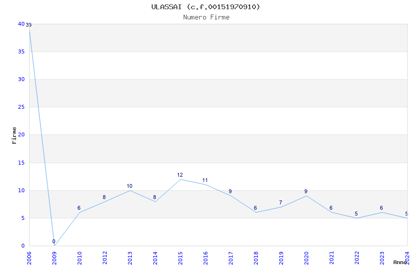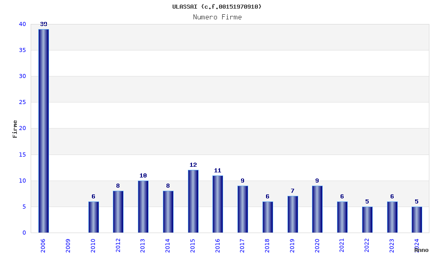 | Anno | Firme | Importi | Media | Naz. | Reg. | Prov. | Comu. |