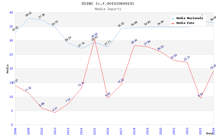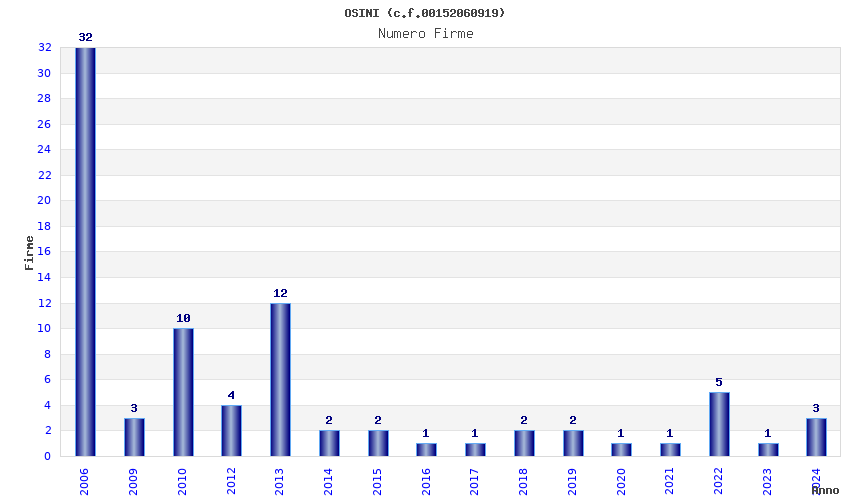 | Anno | Firme | Importi | Media | Naz. | Reg. | Prov. | Comu. |