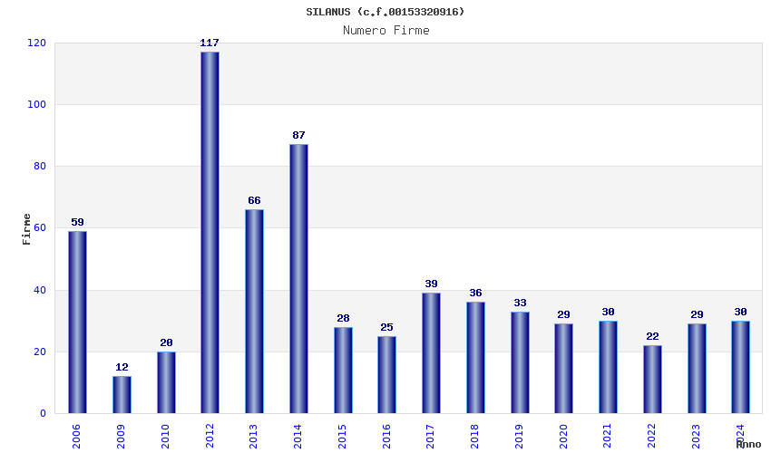 | Anno | Firme | Importi | Media | Naz. | Reg. | Prov. | Comu. |
