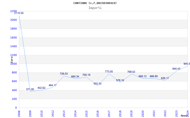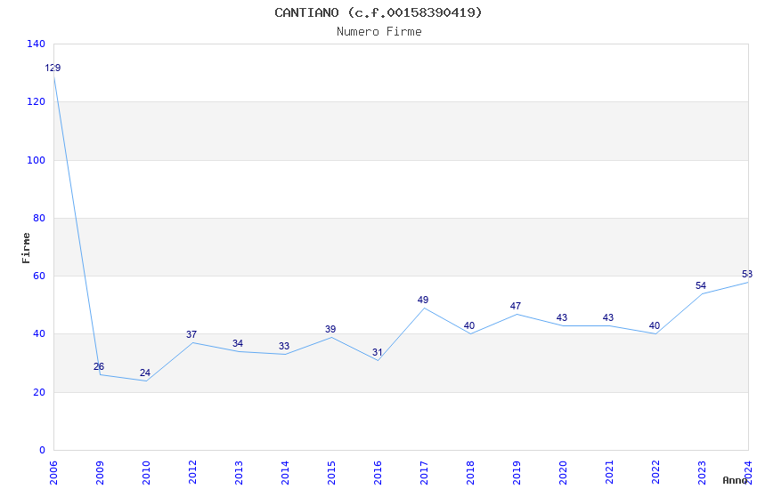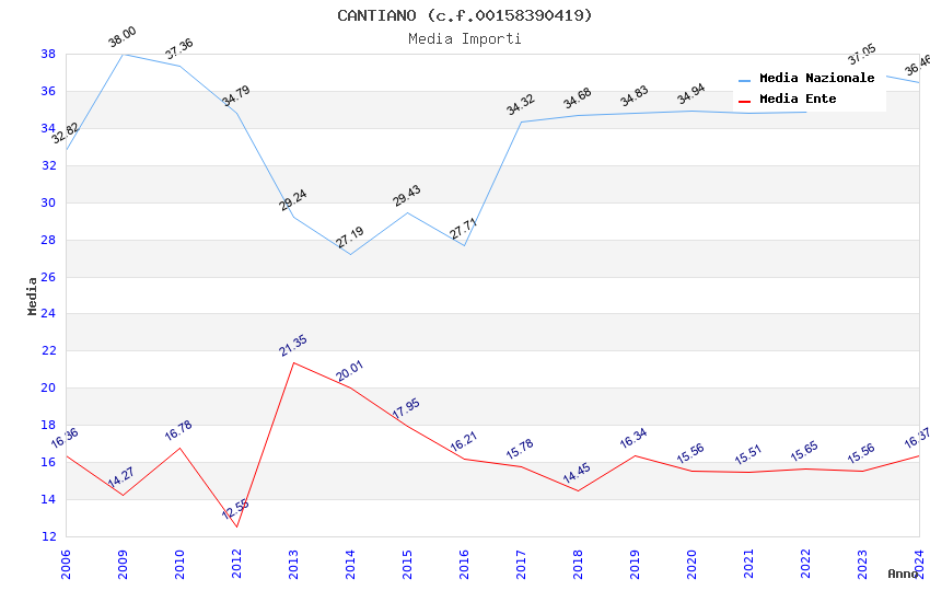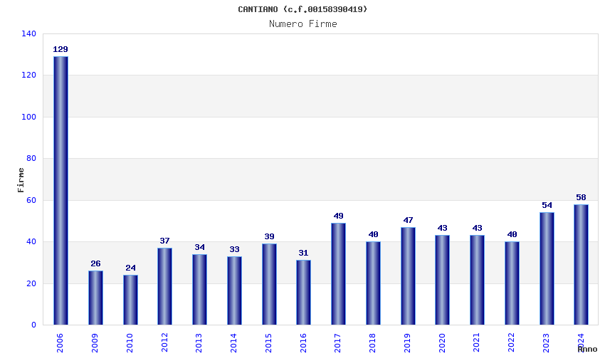 | Anno | Firme | Importi | Media | Naz. | Reg. | Prov. | Comu. |