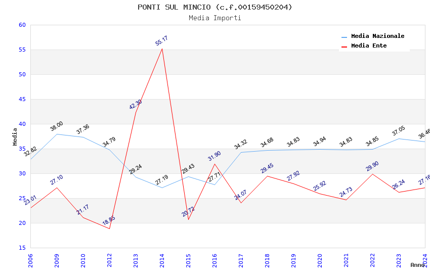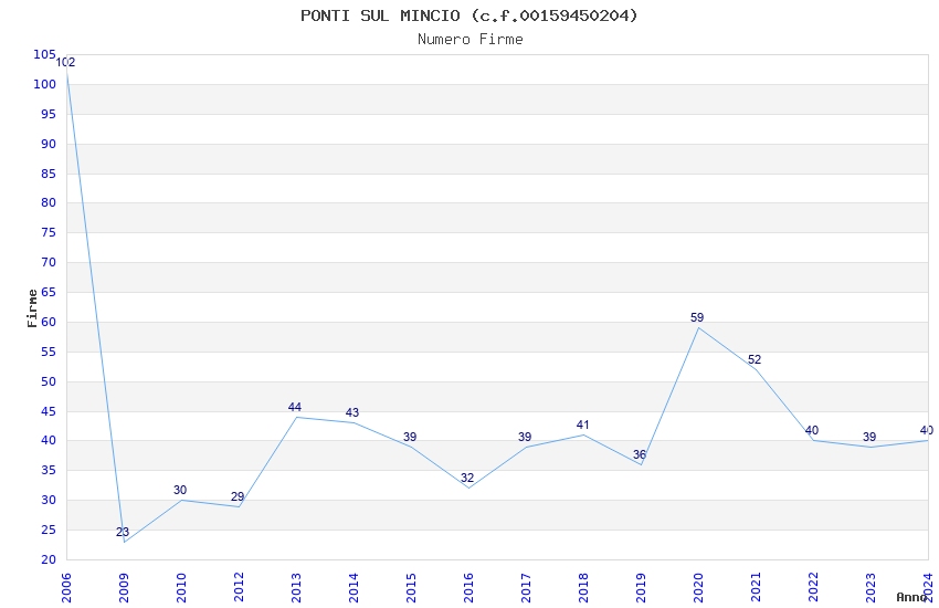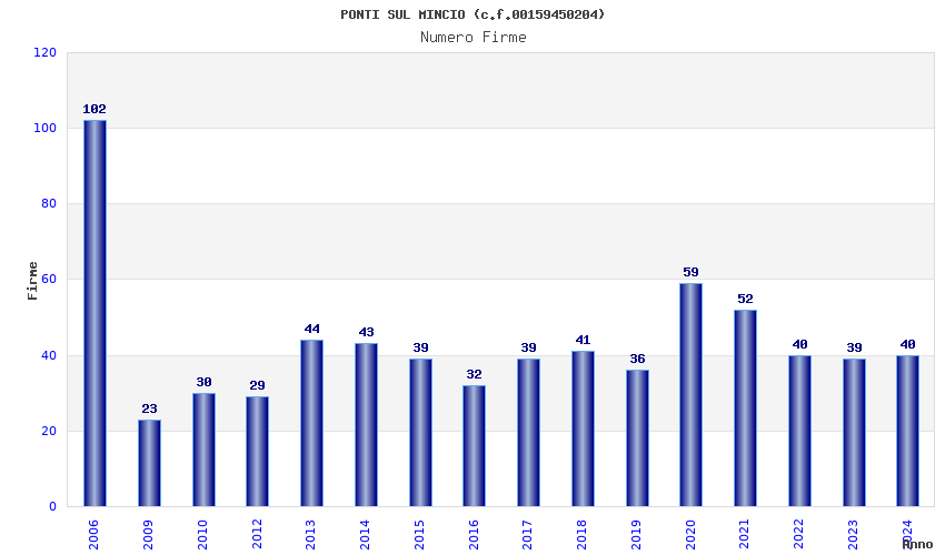 | Anno | Firme | Importi | Media | Naz. | Reg. | Prov. | Comu. |