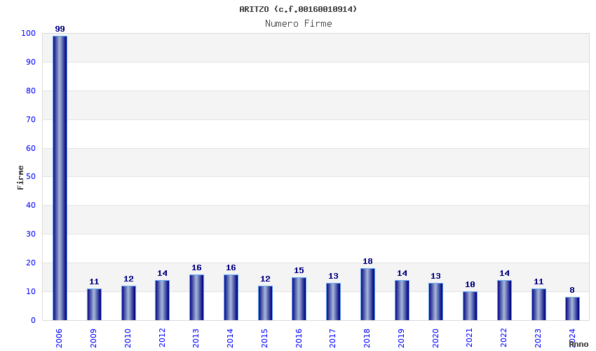 | Anno | Firme | Importi | Media | Naz. | Reg. | Prov. | Comu. |