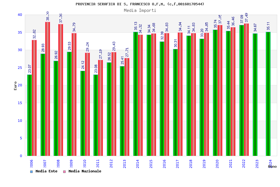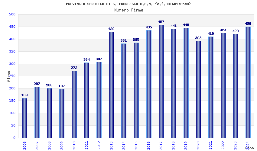 | Anno | Firme | Importi | Media | Naz. | Reg. | Prov. | Comu. |