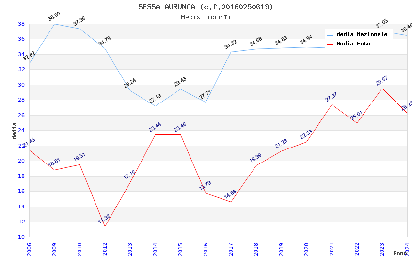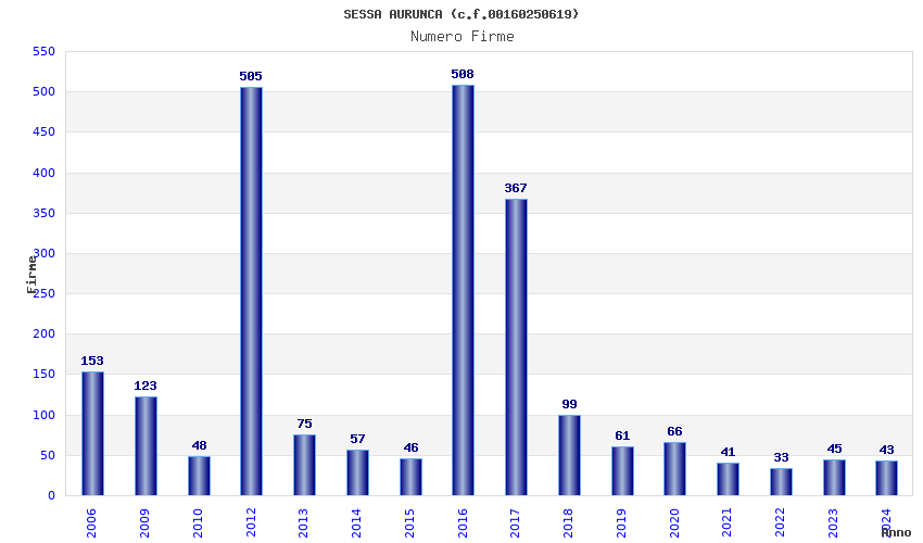 | Anno | Firme | Importi | Media | Naz. | Reg. | Prov. | Comu. |