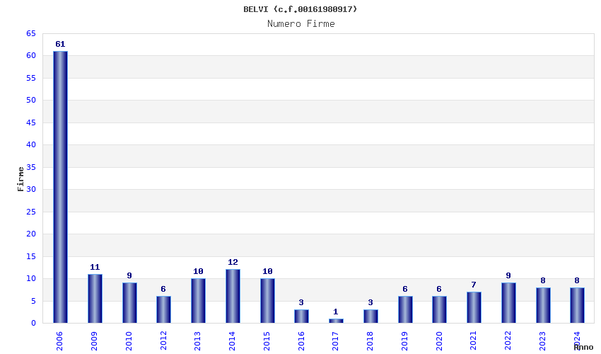 | Anno | Firme | Importi | Media | Naz. | Reg. | Prov. | Comu. |
