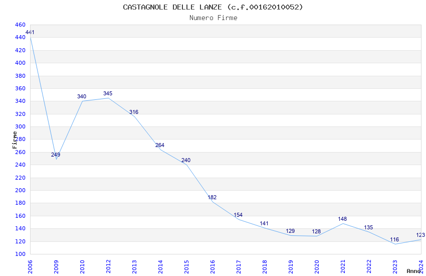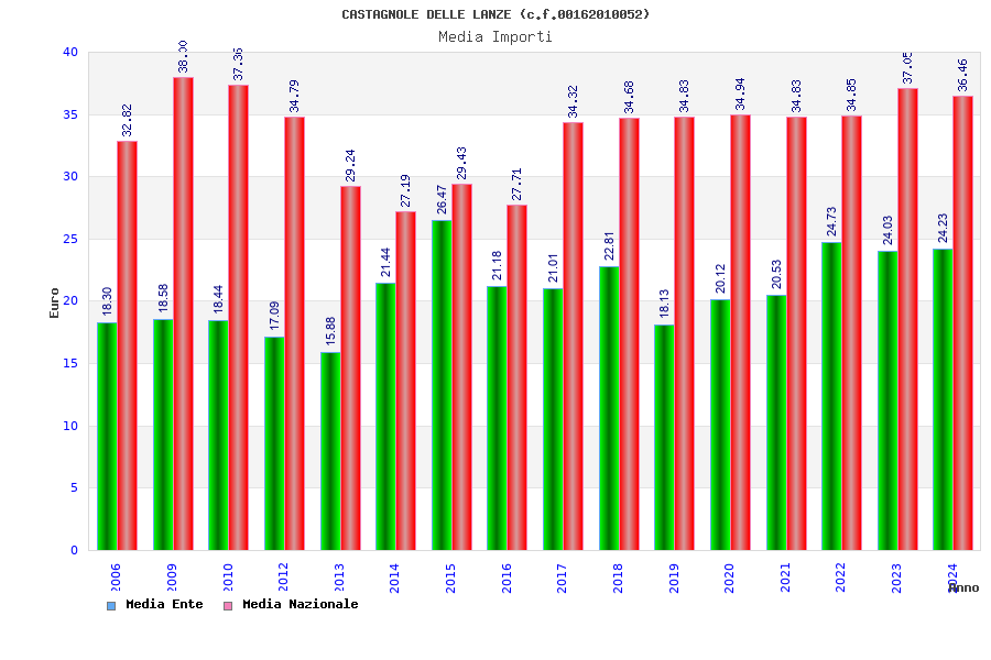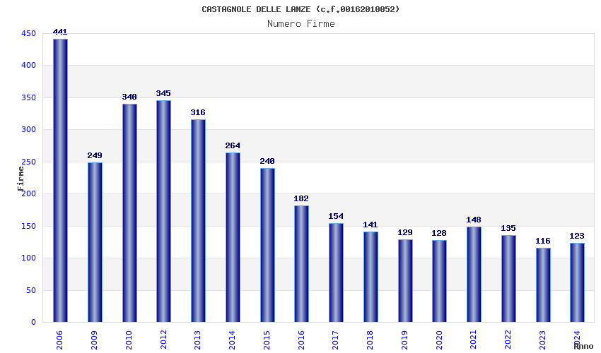 | Anno | Firme | Importi | Media | Naz. | Reg. | Prov. | Comu. |