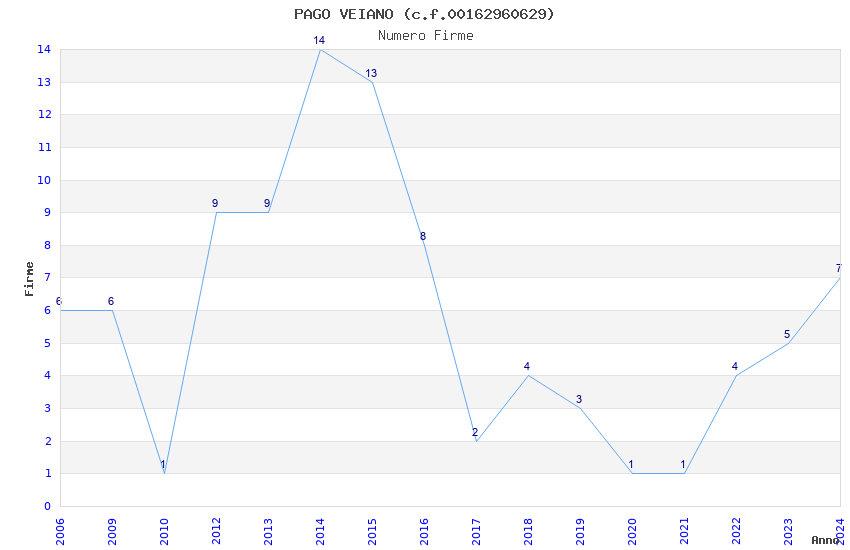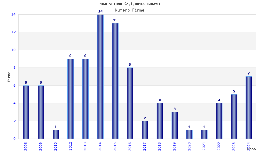 | Anno | Firme | Importi | Media | Naz. | Reg. | Prov. | Comu. |