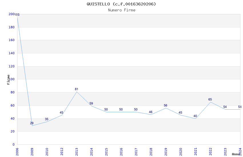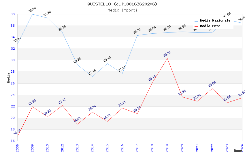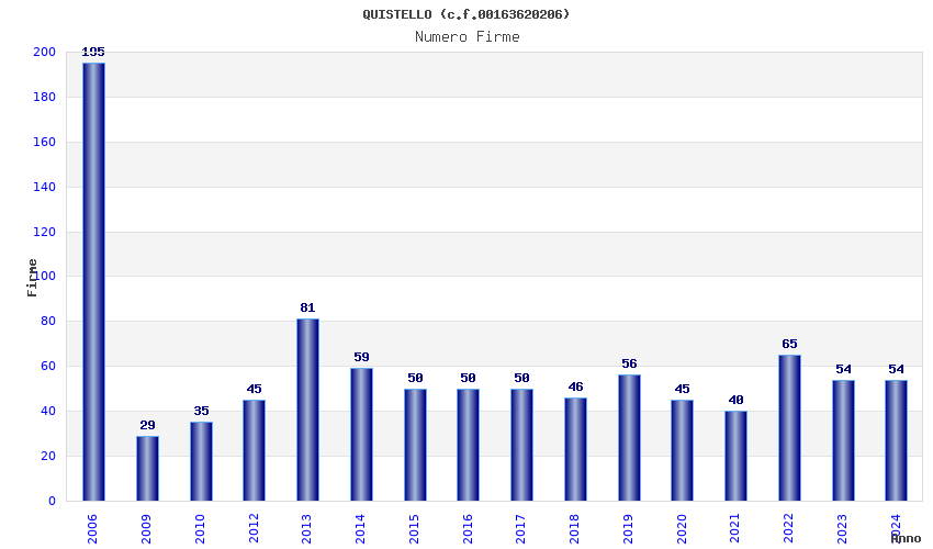 | Anno | Firme | Importi | Media | Naz. | Reg. | Prov. | Comu. |