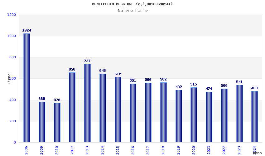 | Anno | Firme | Importi | Media | Naz. | Reg. | Prov. | Comu. |