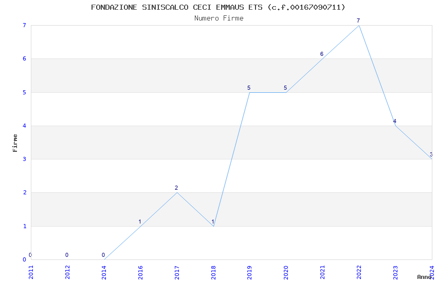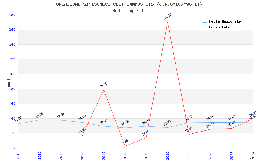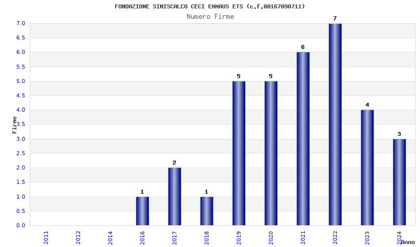 | Anno | Firme | Importi | Media | Naz. | Reg. | Prov. | Comu. |