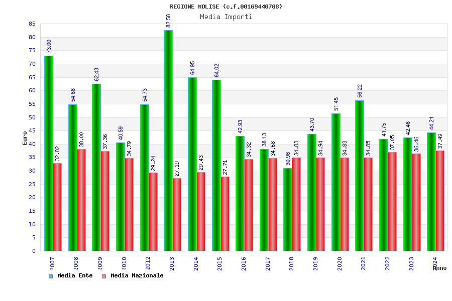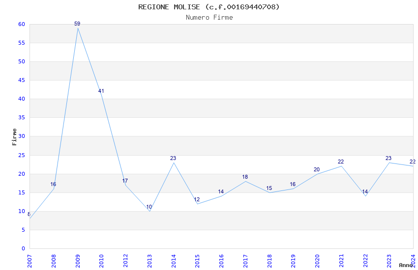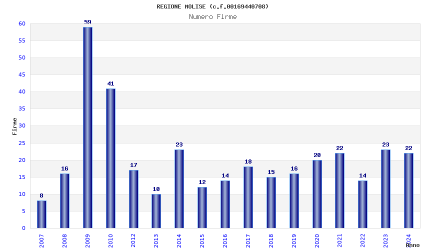 | Anno | Firme | Importi | Media | Naz. | Reg. | Prov. | Comu. |
