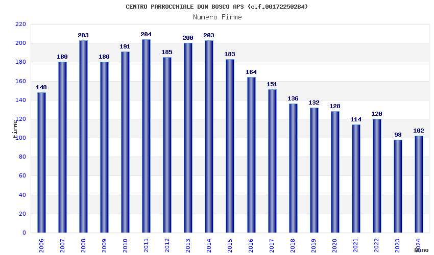 | Anno | Firme | Importi | Media | Naz. | Reg. | Prov. | Comu. |