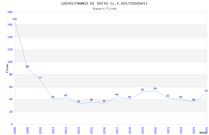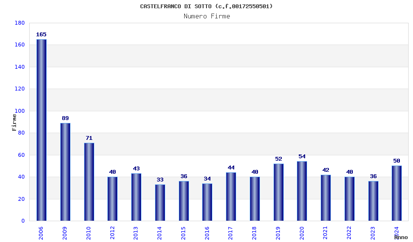 | Anno | Firme | Importi | Media | Naz. | Reg. | Prov. | Comu. |
