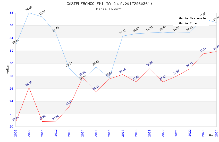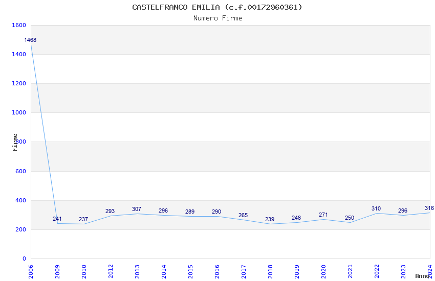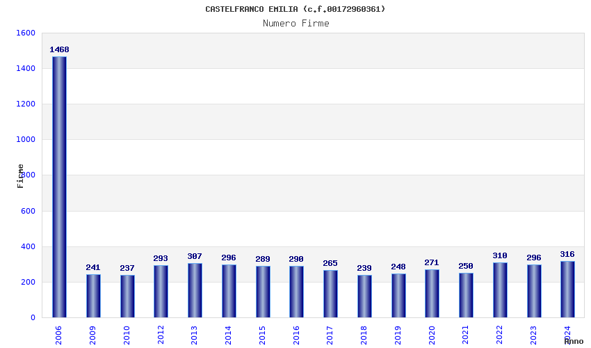 | Anno | Firme | Importi | Media | Naz. | Reg. | Prov. | Comu. |