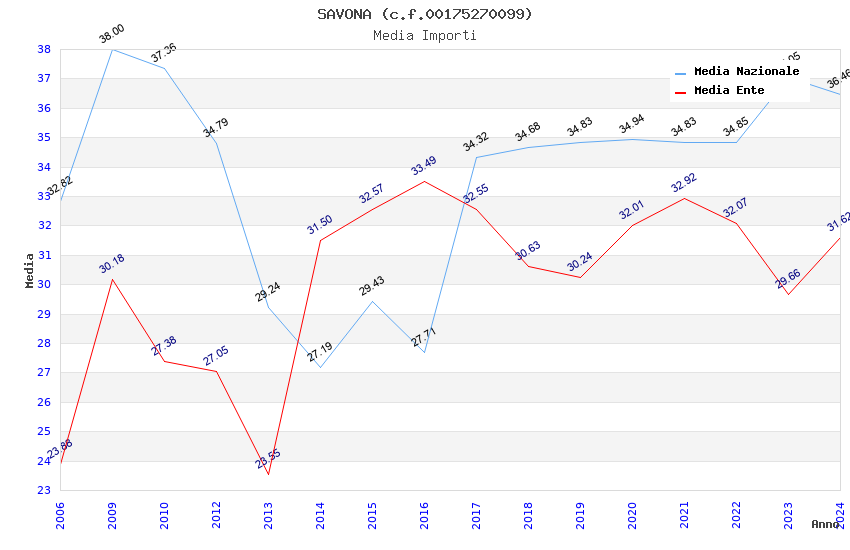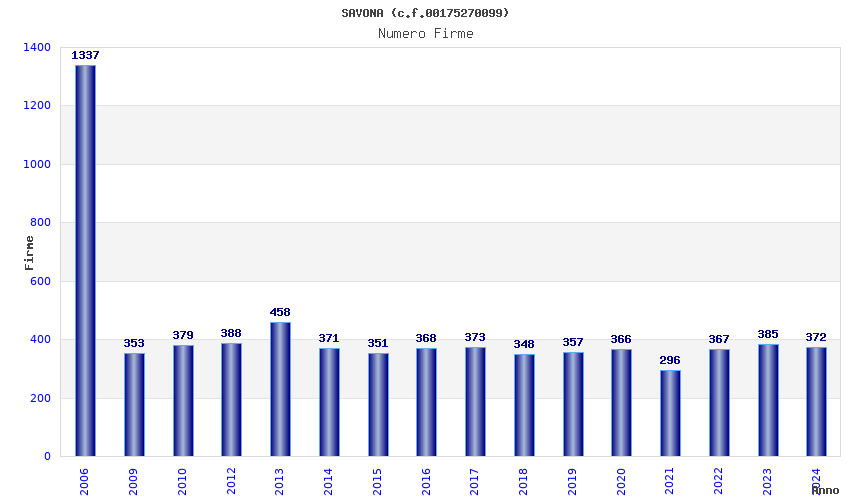 | Anno | Firme | Importi | Media | Naz. | Reg. | Prov. | Comu. |
