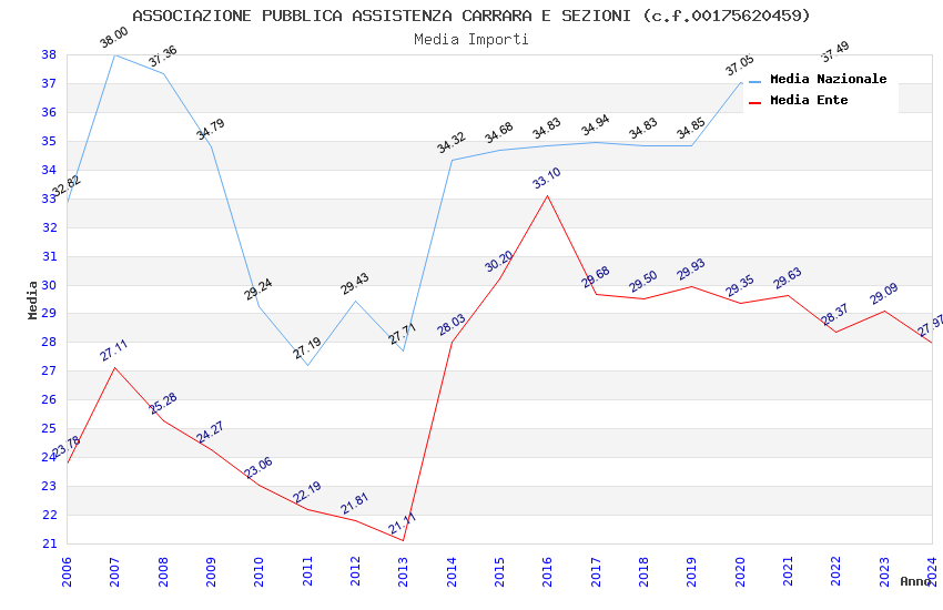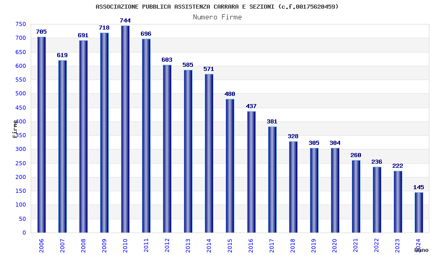 | Anno | Firme | Importi | Media | Naz. | Reg. | Prov. | Comu. |