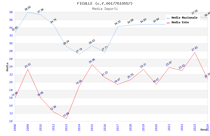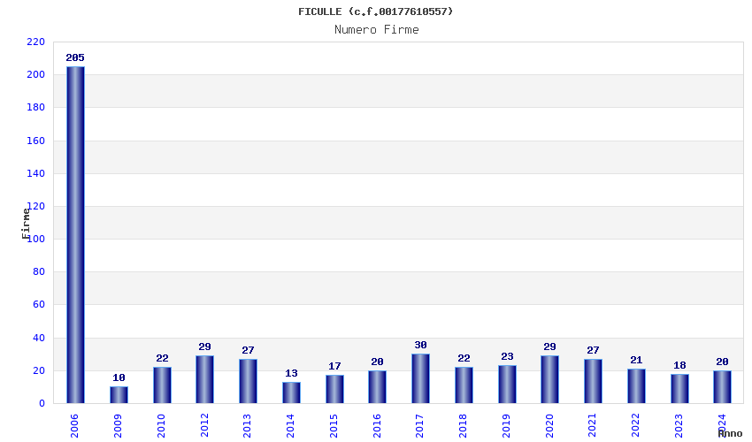 | Anno | Firme | Importi | Media | Naz. | Reg. | Prov. | Comu. |
