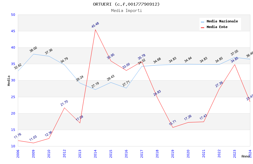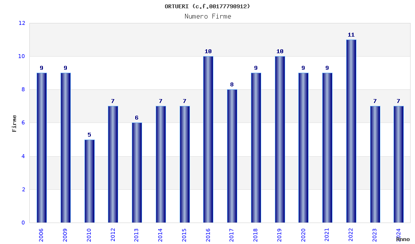 | Anno | Firme | Importi | Media | Naz. | Reg. | Prov. | Comu. |