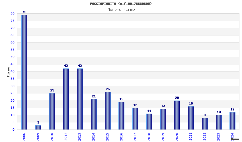 | Anno | Firme | Importi | Media | Naz. | Reg. | Prov. | Comu. |