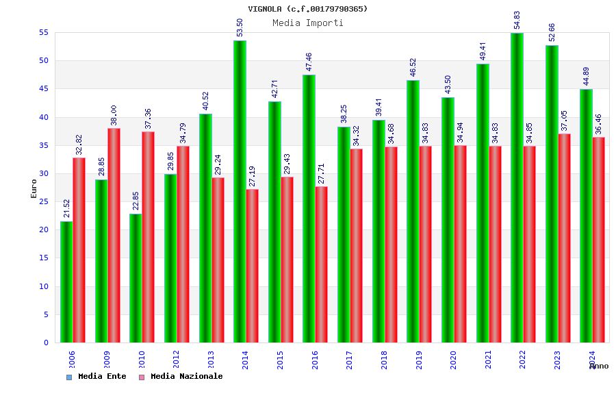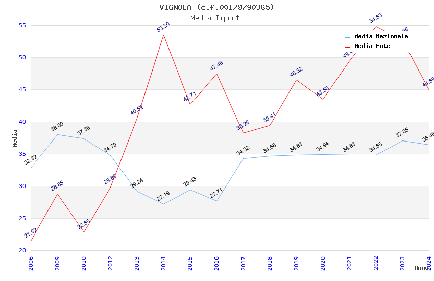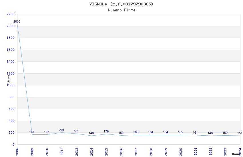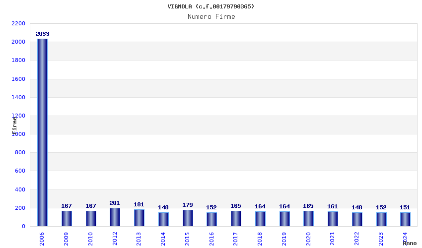 | Anno | Firme | Importi | Media | Naz. | Reg. | Prov. | Comu. |