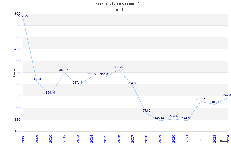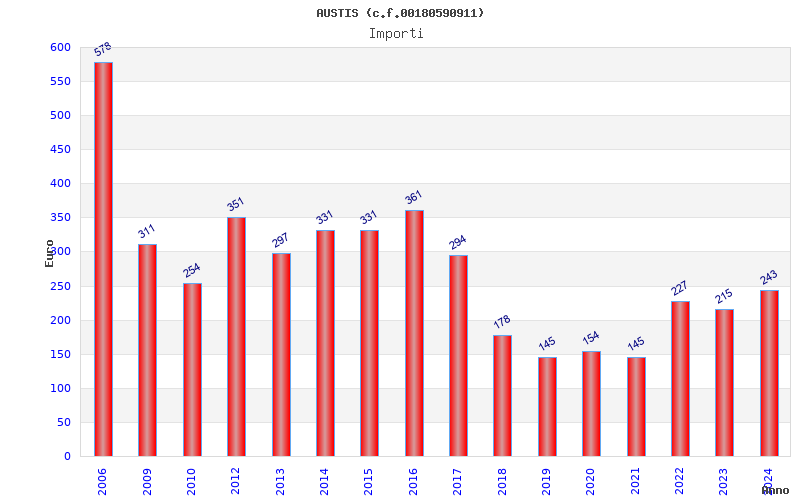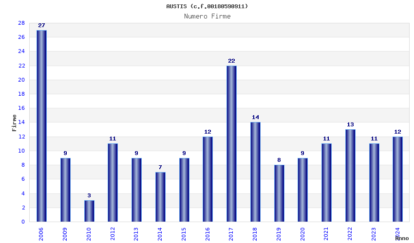 | Anno | Firme | Importi | Media | Naz. | Reg. | Prov. | Comu. |