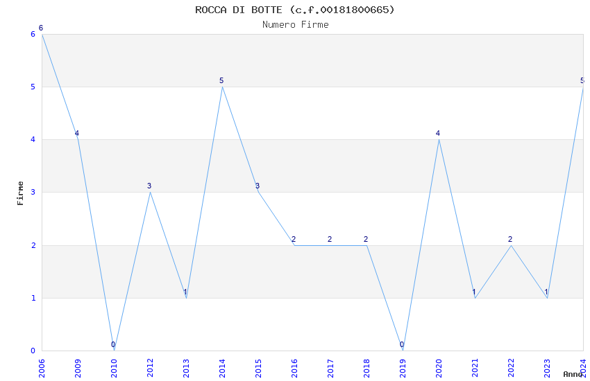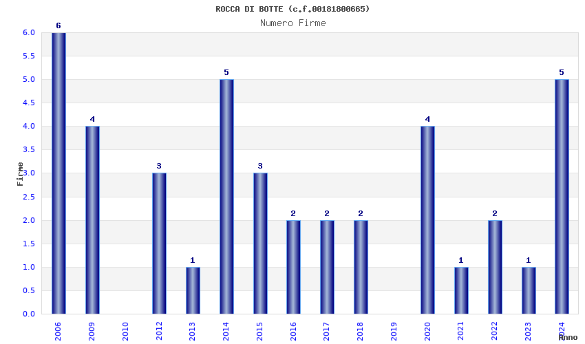 | Anno | Firme | Importi | Media | Naz. | Reg. | Prov. | Comu. |