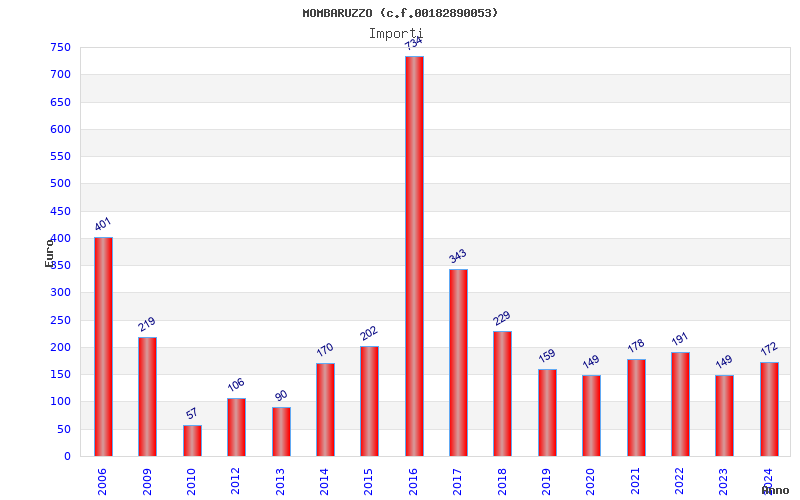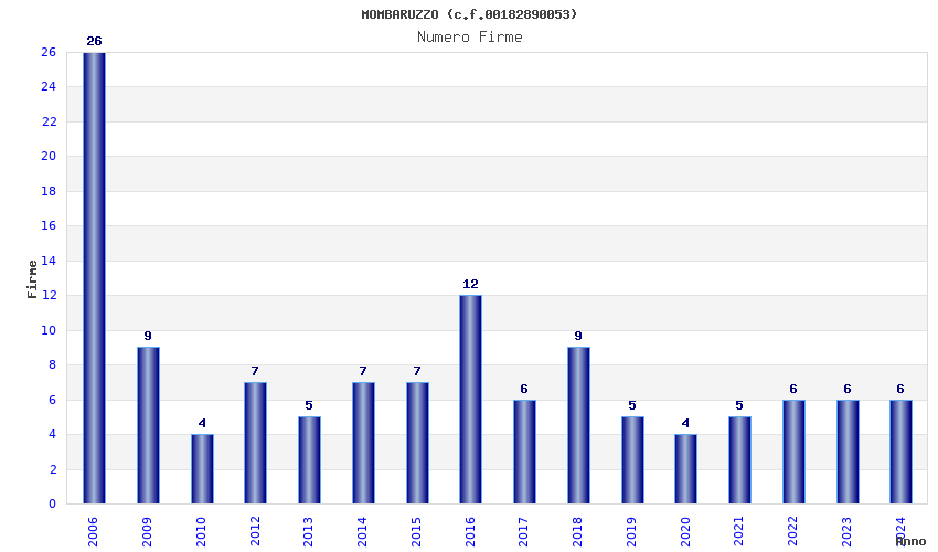 | Anno | Firme | Importi | Media | Naz. | Reg. | Prov. | Comu. |