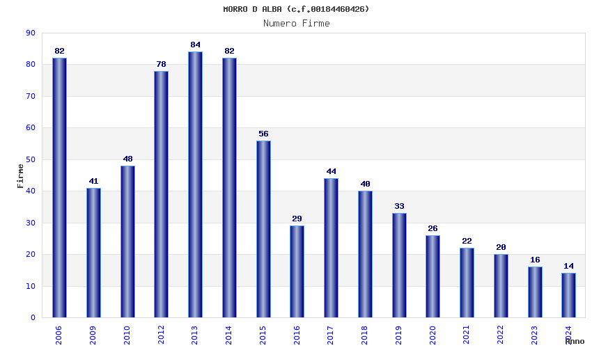 | Anno | Firme | Importi | Media | Naz. | Reg. | Prov. | Comu. |