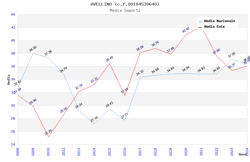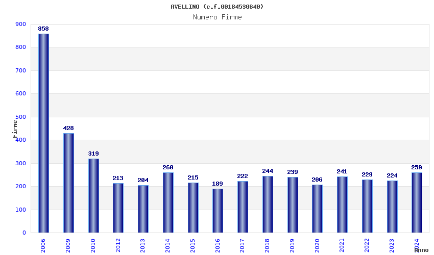 | Anno | Firme | Importi | Media | Naz. | Reg. | Prov. | Comu. |