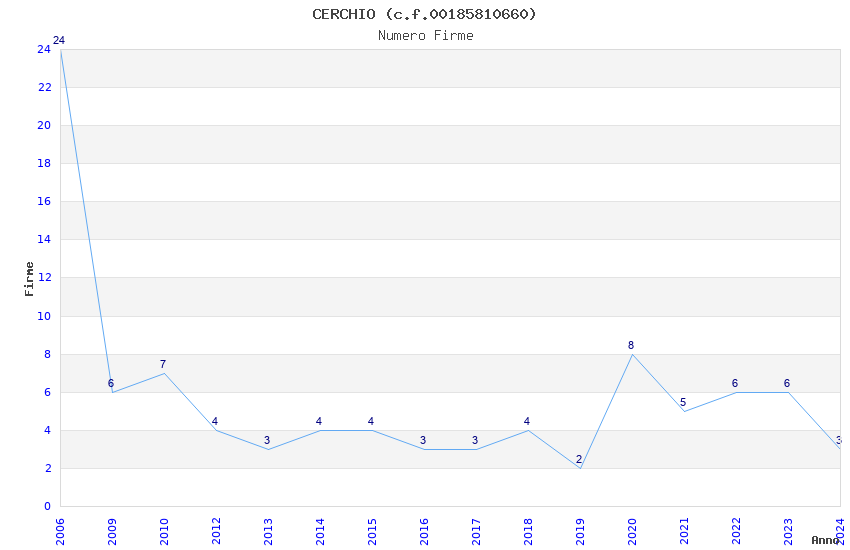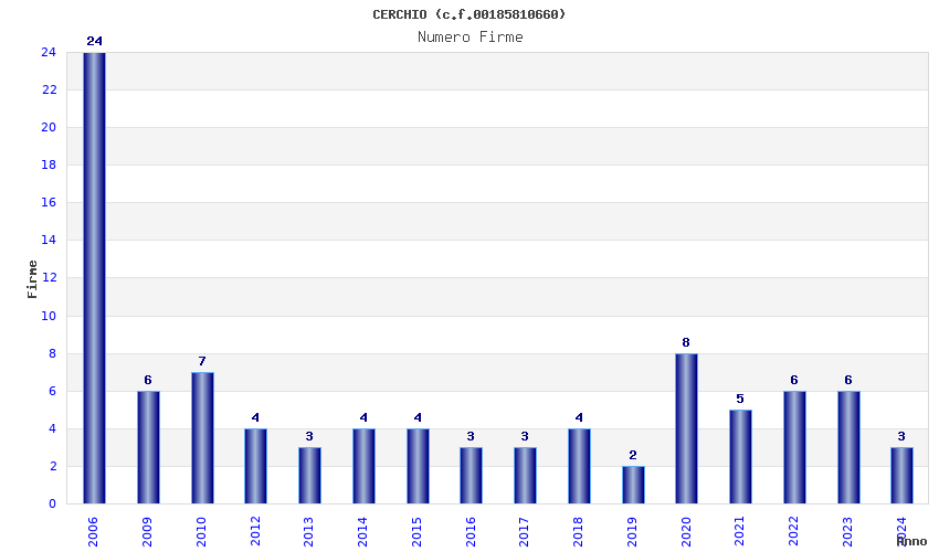 | Anno | Firme | Importi | Media | Naz. | Reg. | Prov. | Comu. |