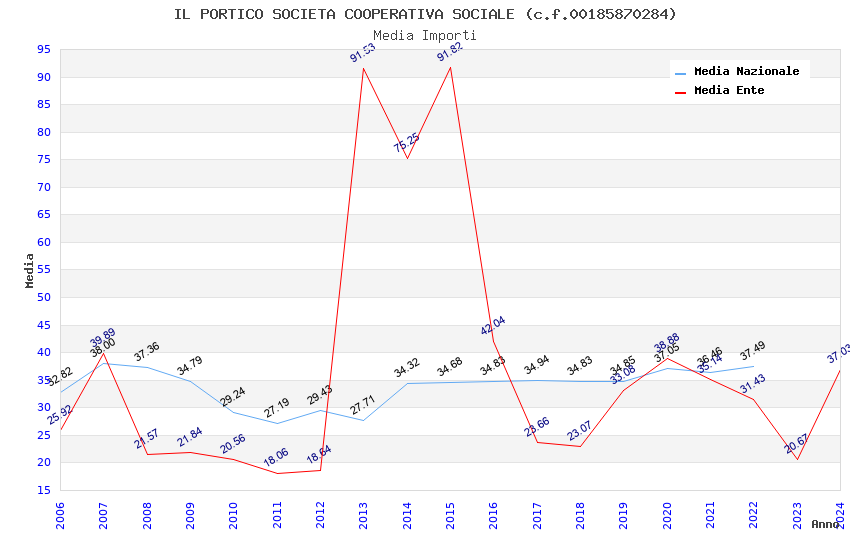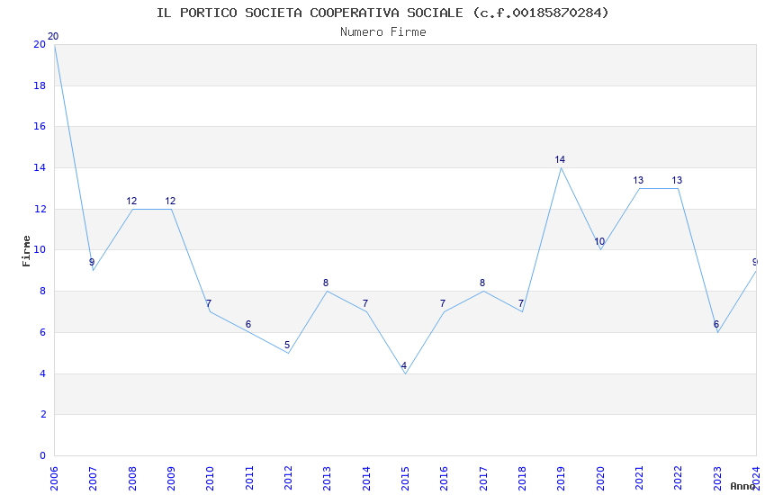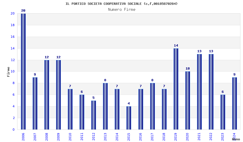 | Anno | Firme | Importi | Media | Naz. | Reg. | Prov. | Comu. |