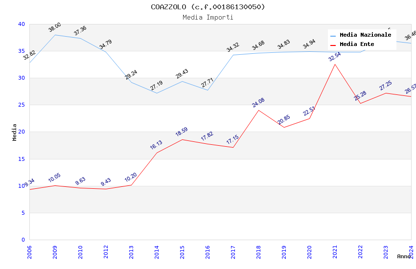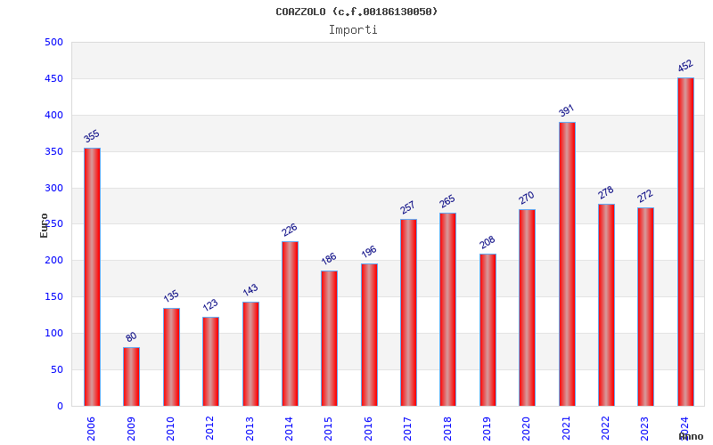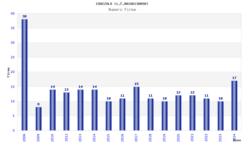 | Anno | Firme | Importi | Media | Naz. | Reg. | Prov. | Comu. |
