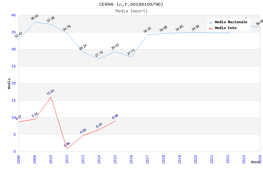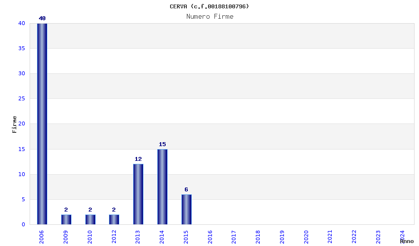 | Anno | Firme | Importi | Media | Naz. | Reg. | Prov. | Comu. |