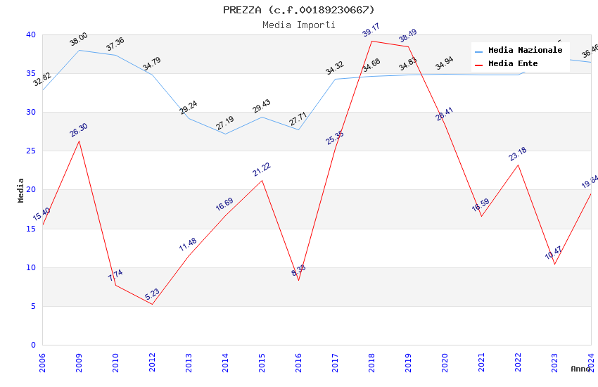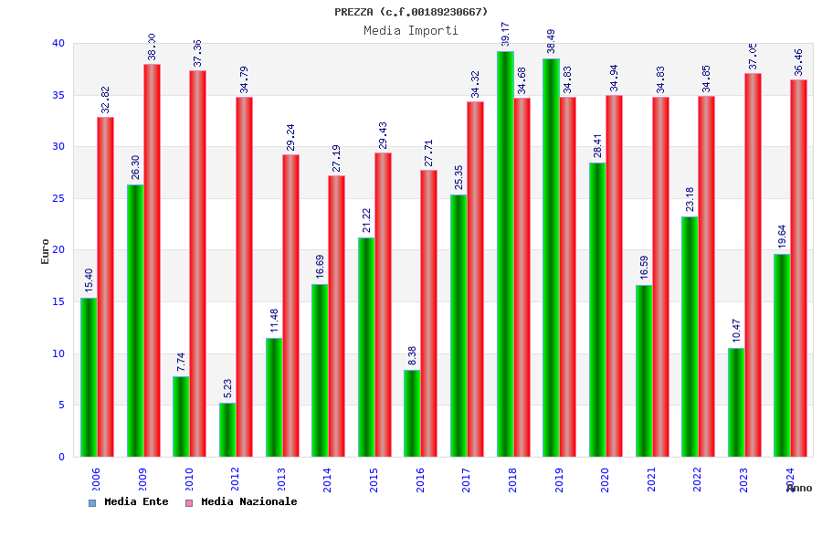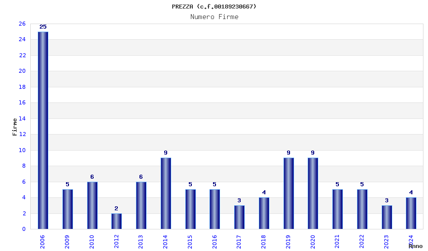 | Anno | Firme | Importi | Media | Naz. | Reg. | Prov. | Comu. |