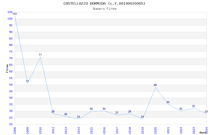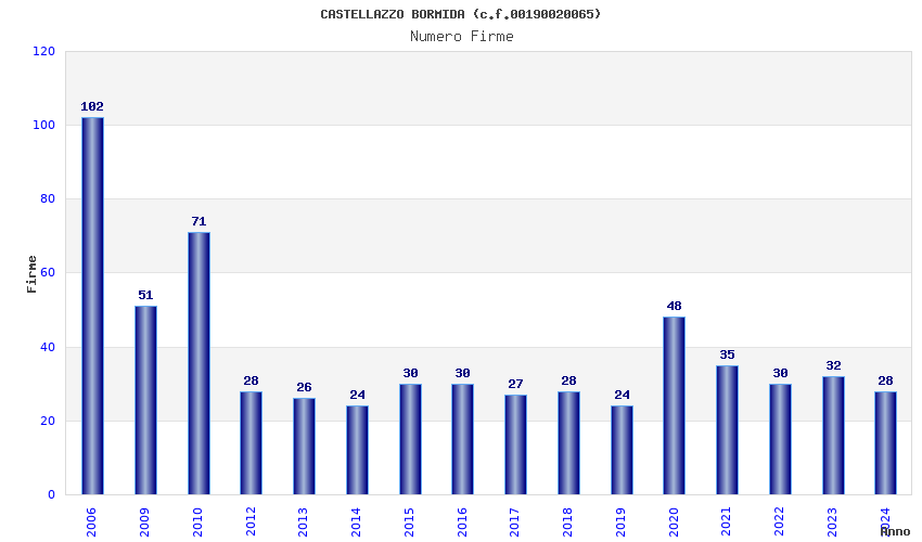 | Anno | Firme | Importi | Media | Naz. | Reg. | Prov. | Comu. |