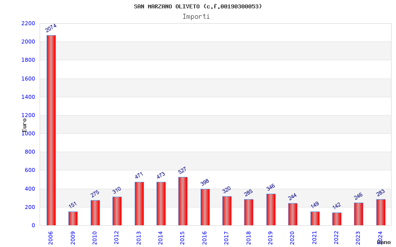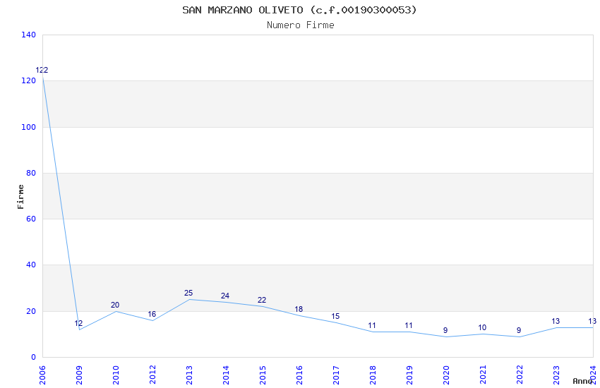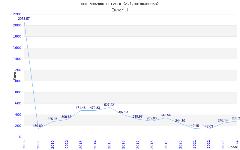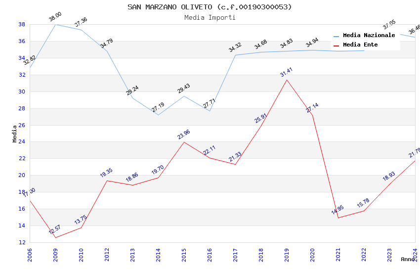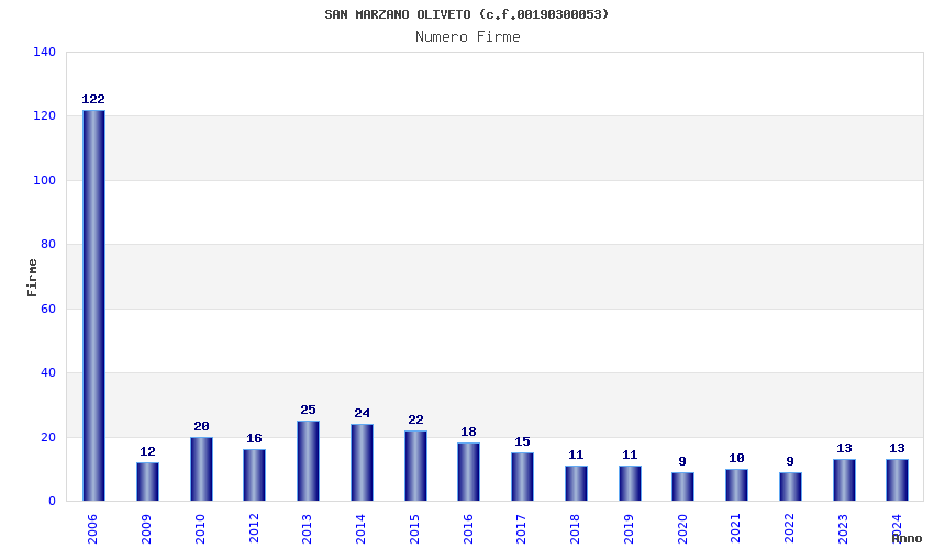 | Anno | Firme | Importi | Media | Naz. | Reg. | Prov. | Comu. |