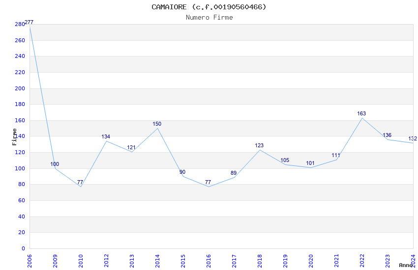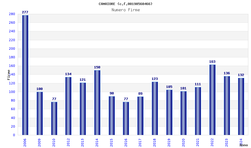Anno Firme Importi Media Naz. Reg. Prov. Comu.