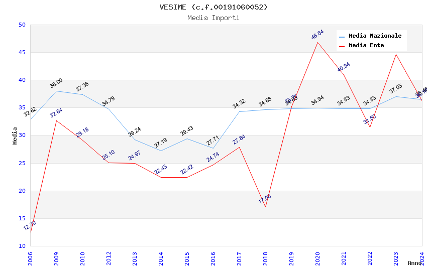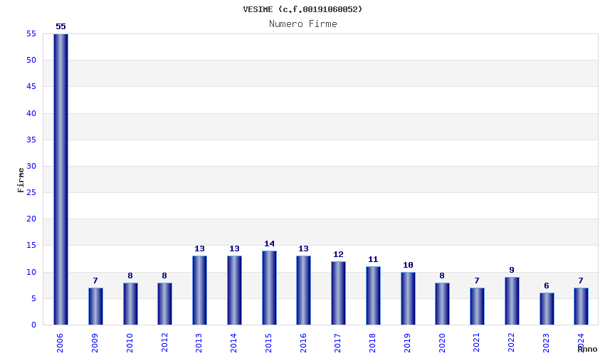 | Anno | Firme | Importi | Media | Naz. | Reg. | Prov. | Comu. |